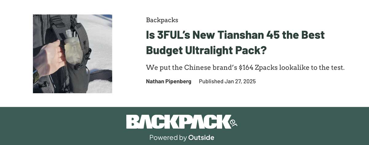 We at 3FULGEAR are truly honored that Outside Backpacker and Nathan Pipenberg chose to test and review our Tianshan backpack.