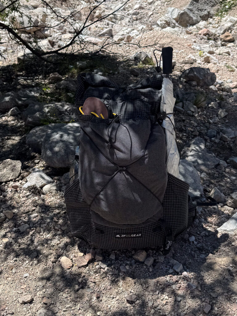 The new TutorPack features a more comfortable hipbelt, a breathable back panel, and a removable carbon fiber frame. The total weight is just 630 g (1.39 lbs). It carries loads up to 12 kg (26.5 lbs) comfortably. On this trip, my base weight was 8 kg (17.6 lbs) and 9 kg (19.8 lbs) with water—it felt great.